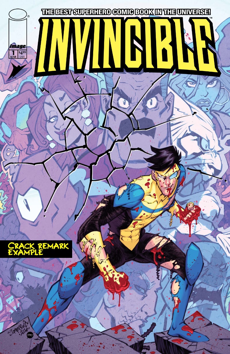 - Crack remark with sig - see the example. Jon will add cracks to the graffiti wall to make the cover even more of an homage to the original cover of Invincible issue 1.